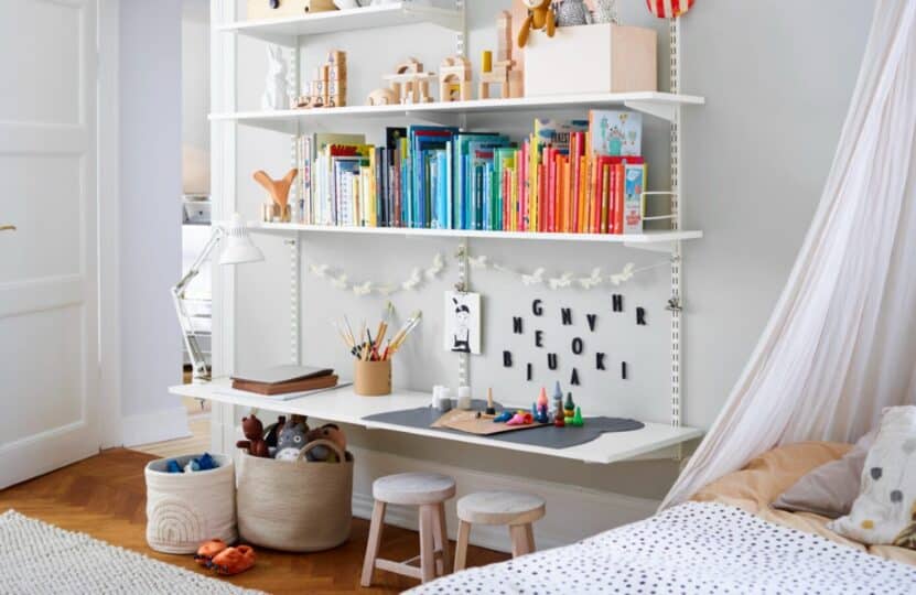 Den typen av hylla är dessutom väldigt populär i moderna skandinaviska barnrum just nu.