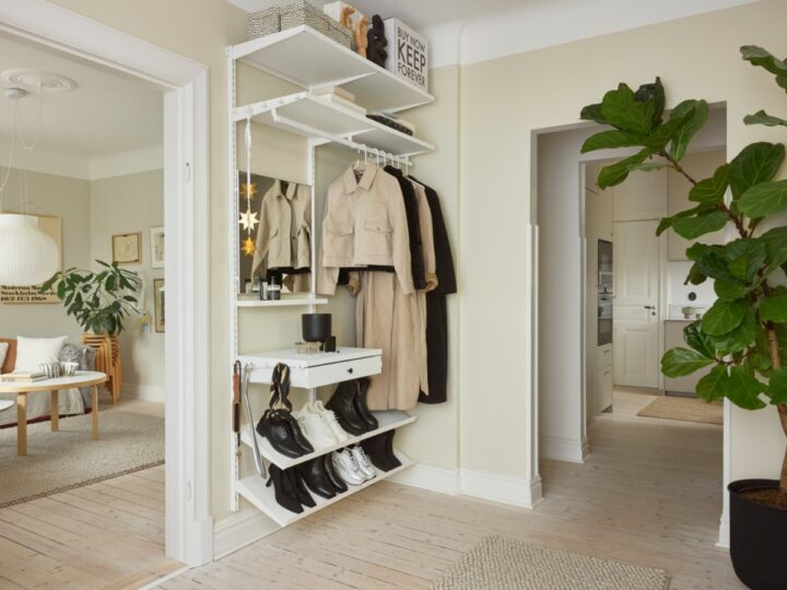 Innan du köper något nytt eller sätter upp fler krokar behöver du ta bort det som inte hör hemma där. Hallen ska inte förvara hela årets ytterkläder. Bara det som används just nu. Allt annat mår bättre någon annanstans. När hallen blir luftigare känns den automatiskt mer organiserad.