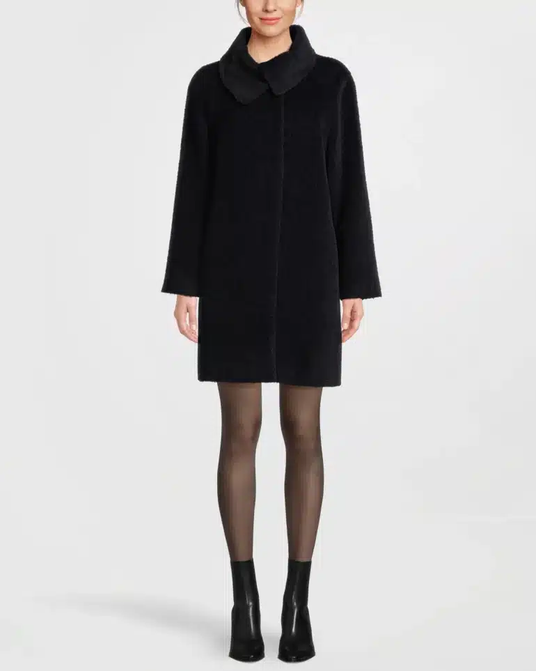 En lång tidlös svart kappa med hög krage funkar vid nästan alla tillfällen.